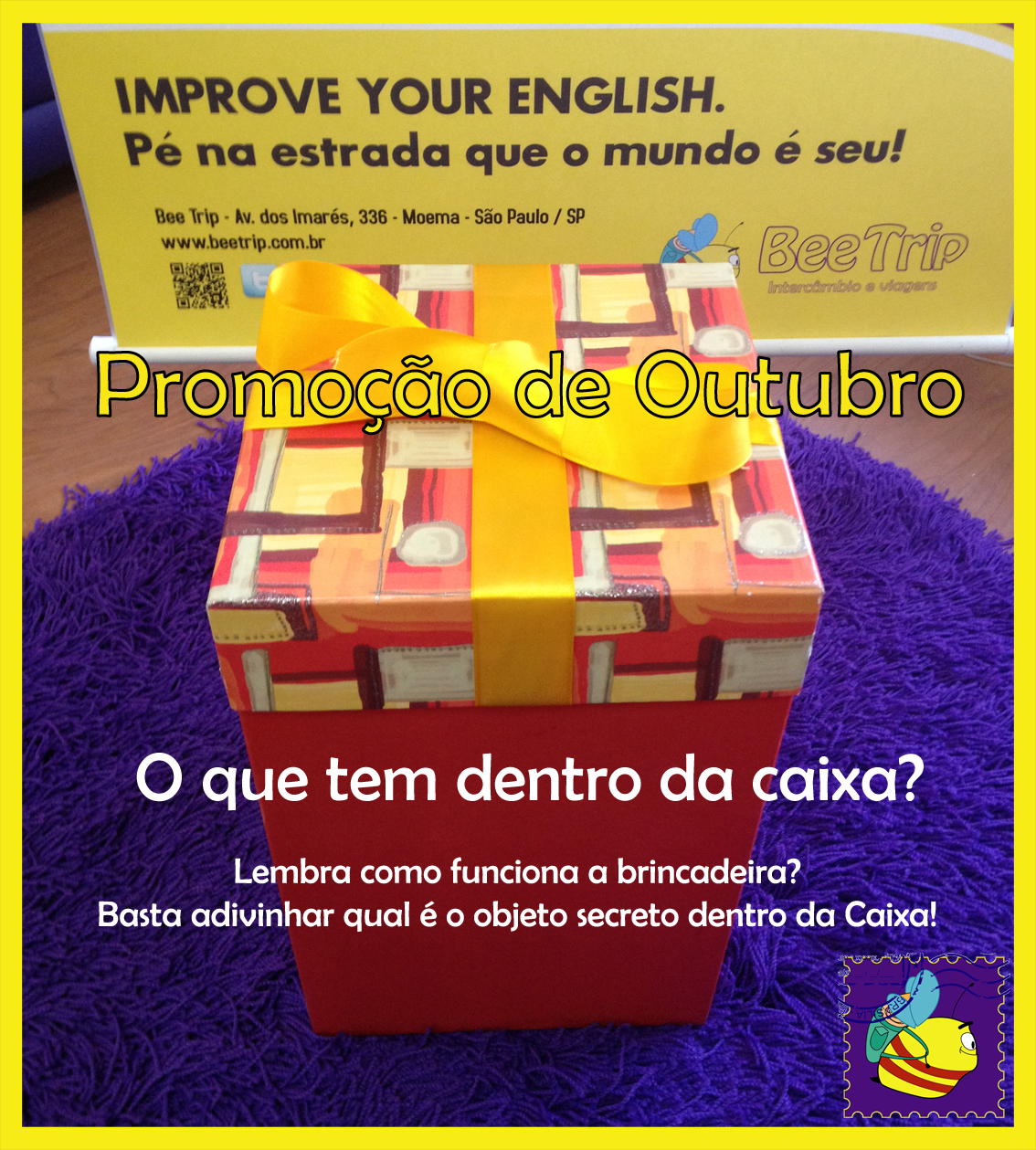 A cada semana a Beetrip solta algumas dicas. Pode chutar quantas vezes quiser, o 1º a acertar ganha o presente com o objeto dentro e ainda concorre a uma bolsa de 2 semanas de inglês no Canada
